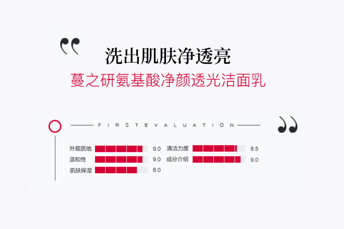 在产品测评环节,专家通过产品质地、清洁能力、成分鉴定、试用多维度对蔓之研氨基酸净颜透光洁面乳给予了全面好评。